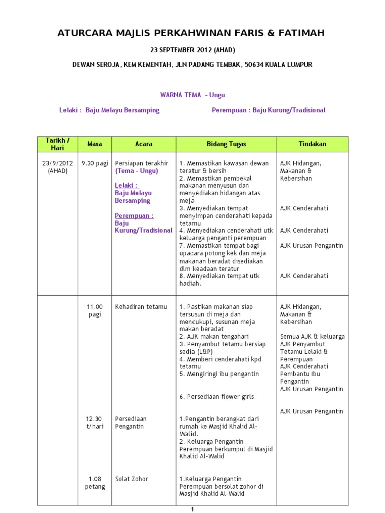 Sampel Aturcara Majlis Perkahwinan Di Dewan