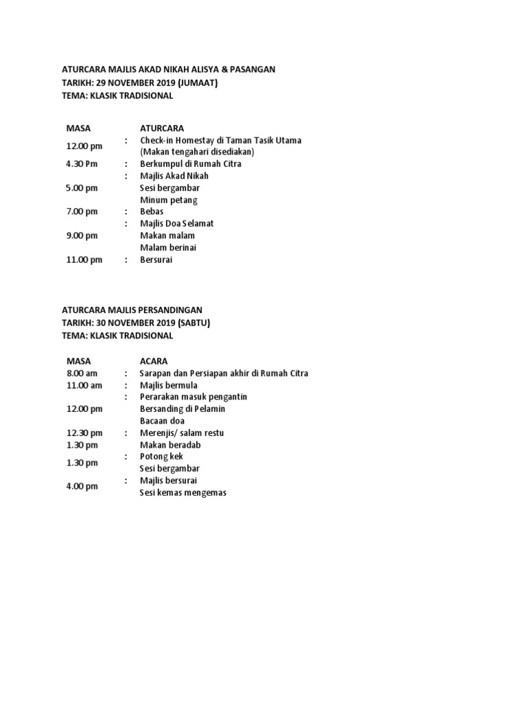 Aturcara Majlis Akad Nikah Alisya Hebahan Pdf